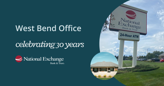 National Exchange Bank & Trust proudly celebrates the 30th anniversary of its West Bend office, marking three decades of dedicated service to customers and the local community. To celebrate this milestone, the office will host a week long open house from Monday, December 15, through Friday, December 19, inviting community members to join the festivities.