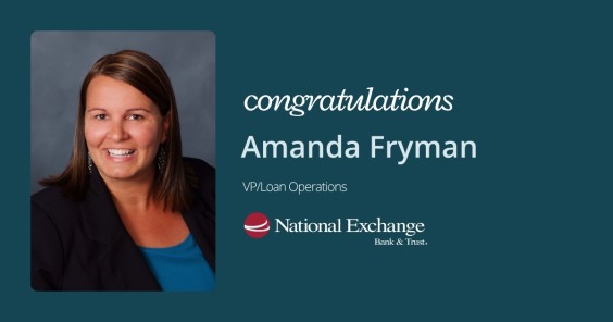 Amanda Fryman was recently promoted to VP/Loan Operations for National Exchange Bank & Trust and works out of the bank’s operations office in downtown Fond du Lac.