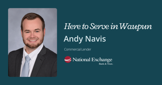 National Exchange Bank & Trust (NEBAT) is pleased to announce that Andy Navis, Commercial Lender, has established office hours at the bank’s Waupun location, and he is readily available to support the community. With a strong commitment to serving local businesses, Navis is prepared to assist with all commercial lending needs and provide personalized financial solutions tailored to each business.