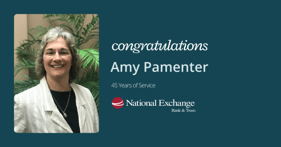 Amy Pamenter recently celebrated 45 years of service to National Exchange Bank & Trust.