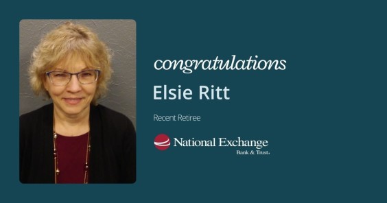 Congratulations to Elsie Ritt, who recently retired from National Exchange Bank & Trust.